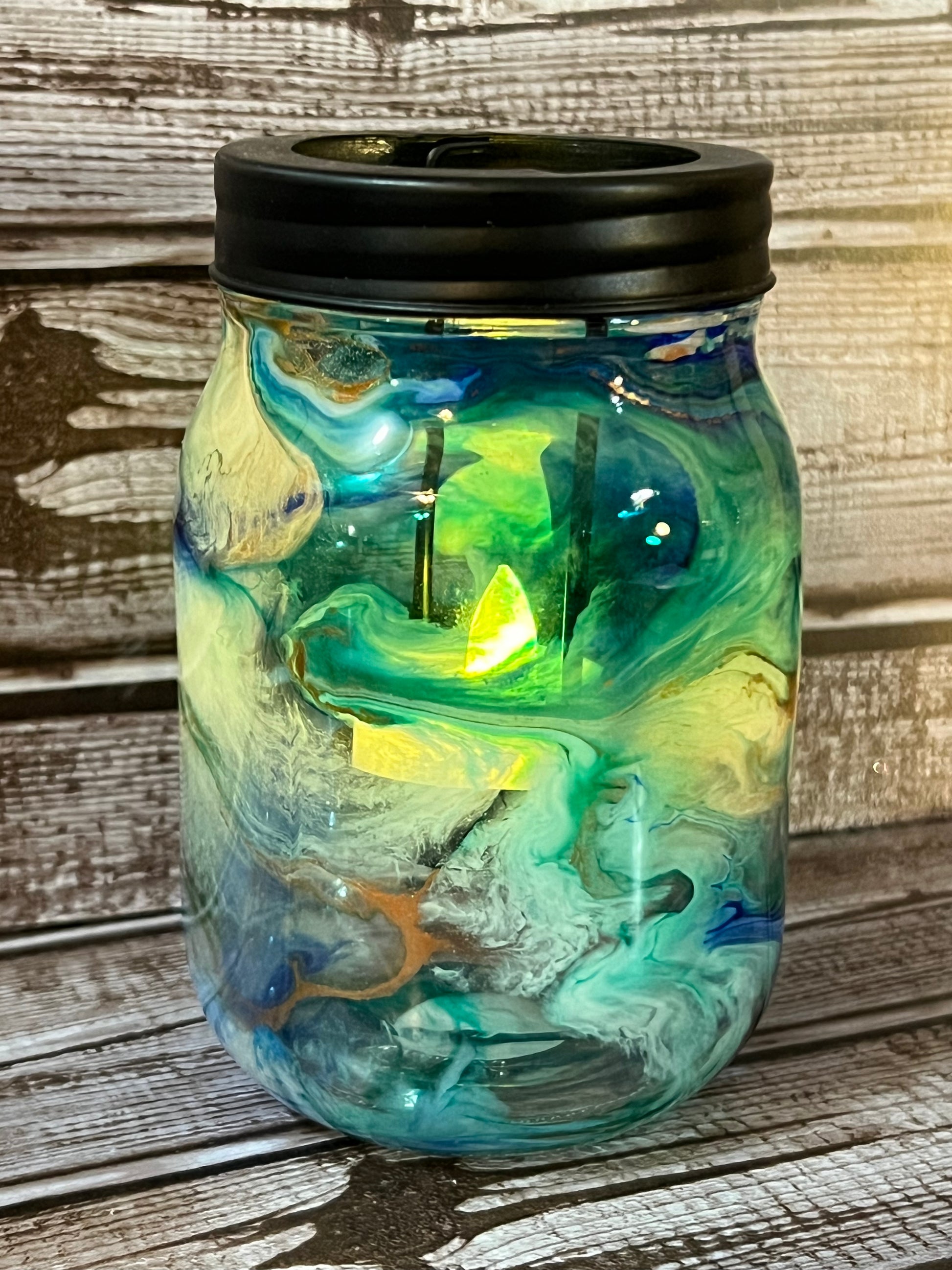This is a candleholder made using a mason jar and an insert to hold the candle.